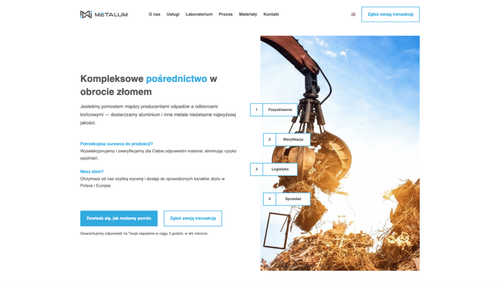 Europejski pośrednik w obrocie aluminium poszukiwał prostej, czytelnej strony, która skutecznie połączy komunikację z dwiema grupami odbiorców.