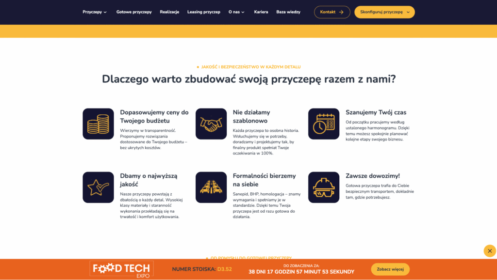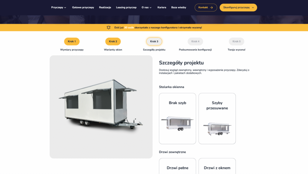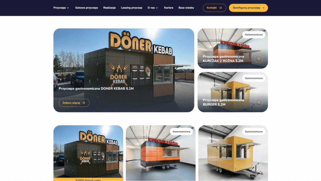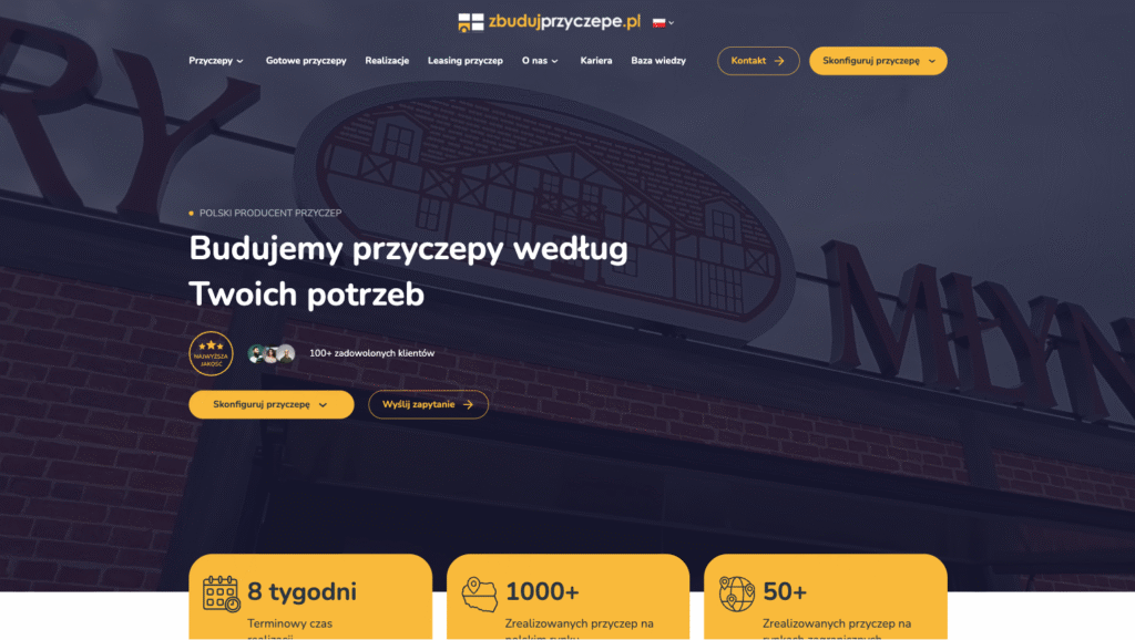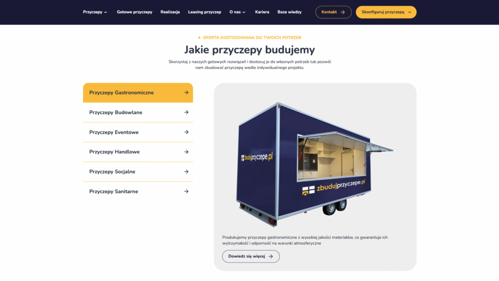 Zbuduj Przyczepę to polska firma oferująca projektowanie i budowę przyczep gastronomicznych, socjalnych i specjalistycznych dla firm z różnych branż. Klient potrzebował nowej wersji strony, która odświeży wizerunek marki i ułatwi klientom konfigurację indywidualnych projektów.
