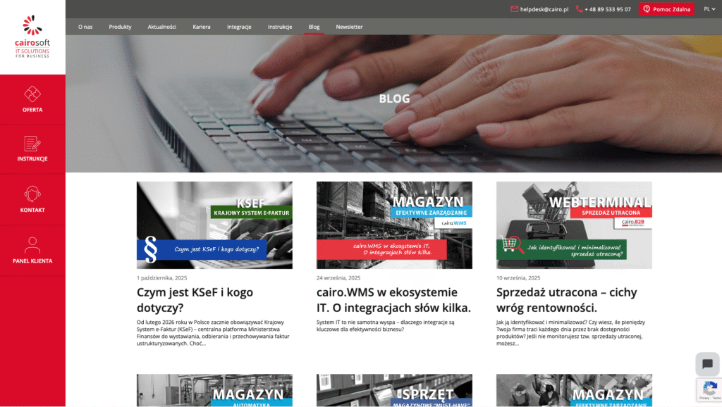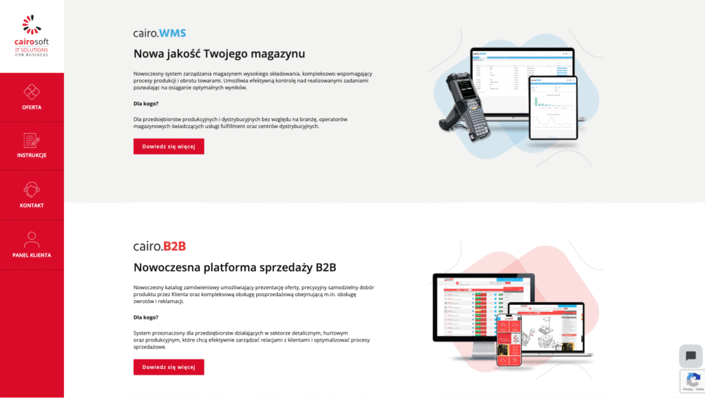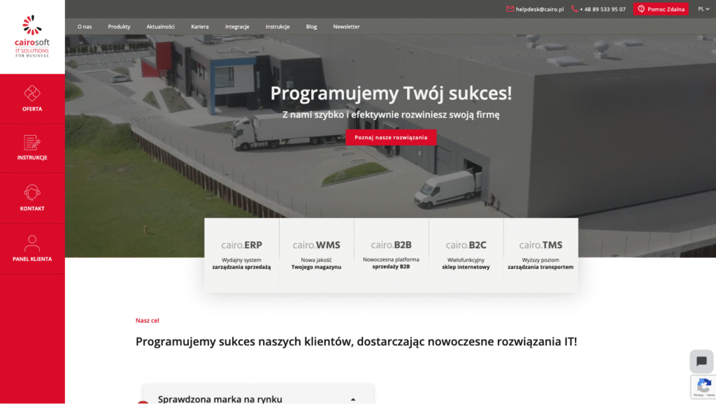 Cairo Soft to firma tworząca systemy informatyczne dla sektora transportu i logistyki. Klient posiadał własny projekt graficzny strony i potrzebował partnera, który skutecznie wdroży go w systemie WordPress, zapewniając zespołowi marketingowemu pełną elastyczność w tworzeniu i edycji treści.